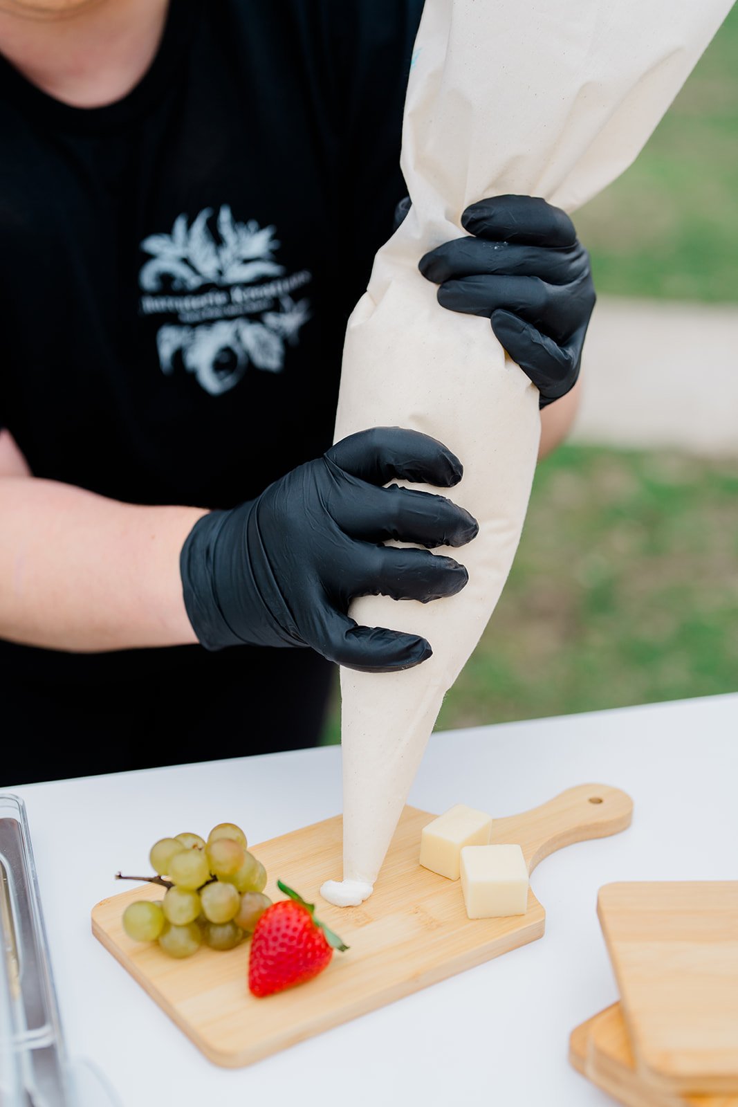 Design a menu that perfectly suits your event with our bespoke charcuterie cart. Each booking includes two hours of dedicated service featuring premium meats, cheeses, and seasonal pairings. Elevated add-on options are available to further personalize your experience, including our signature hand-piped ricotta, artisanal miniature boards, or individual charcuterie cups. -
