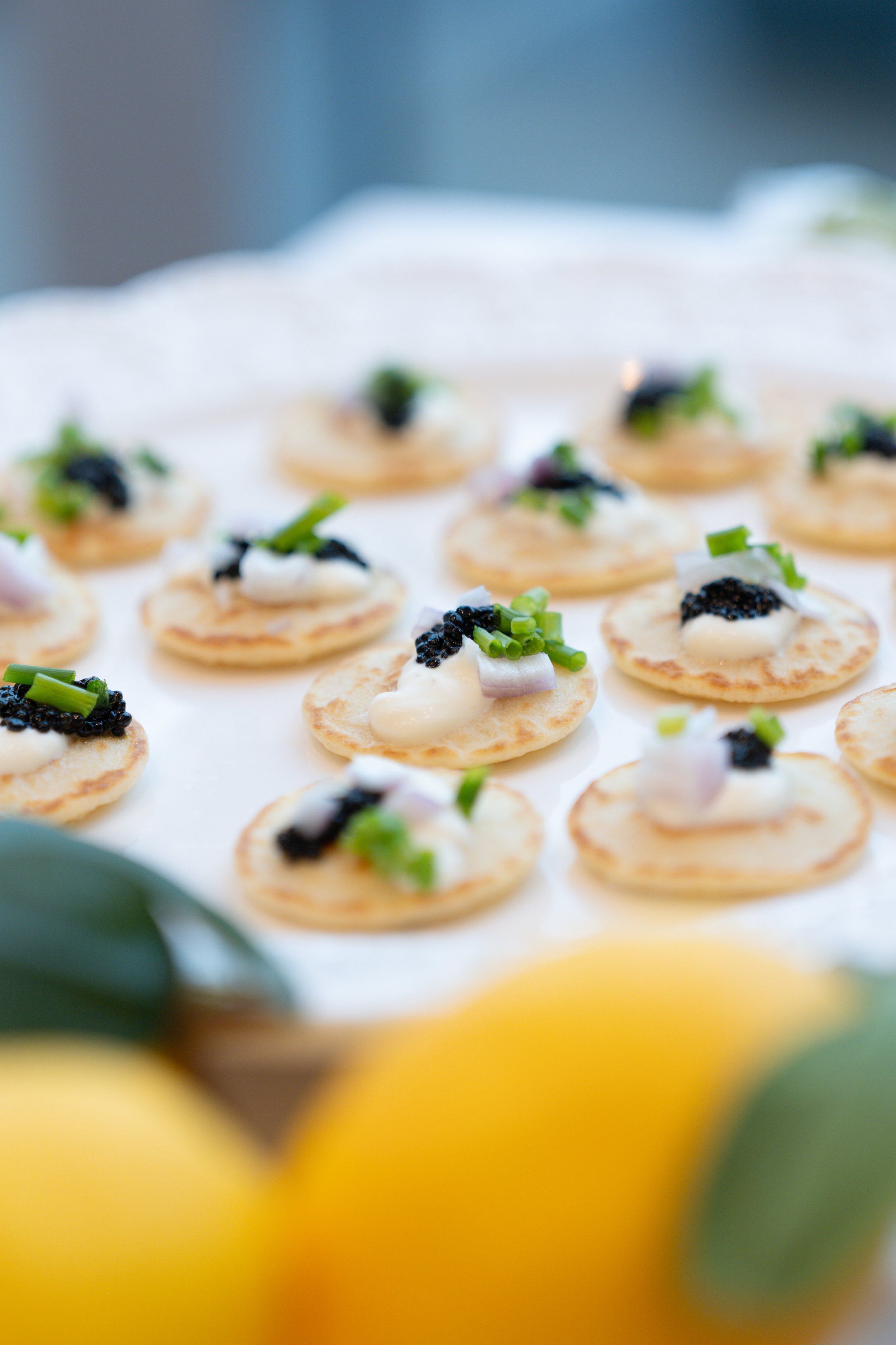 Design a sophisticated focal point for your event with our caviar service! Each booking includes up to two hours of dedicated service featuring a selection of fresh, imported caviar paired with your choice of two premium vessels, such as crisp artisanal potato chips or traditional blinis. Guests can further personalize each bite with our signature hand-piped crème fraîche and a variety of curated toppings. Elevated add-on options are available to further refine your menu. -